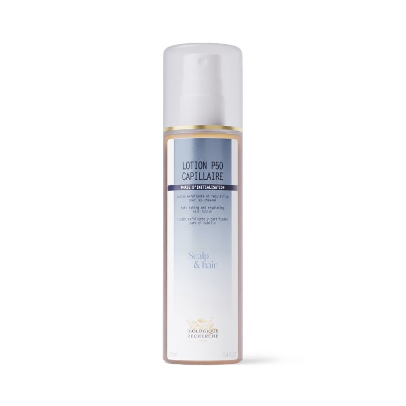 Lotion P50 Capillaire de Biologique Recherche es un tratamiento multifuncional que equilibra y purifica el cuero cabelludo, mejorando la salud capilar desde la raíz. Este producto exfolia suavemente, eliminando células muertas e impurezas, mientras regula el exceso de sebo y fortalece el cabello para un aspecto revitalizado y con brillo.